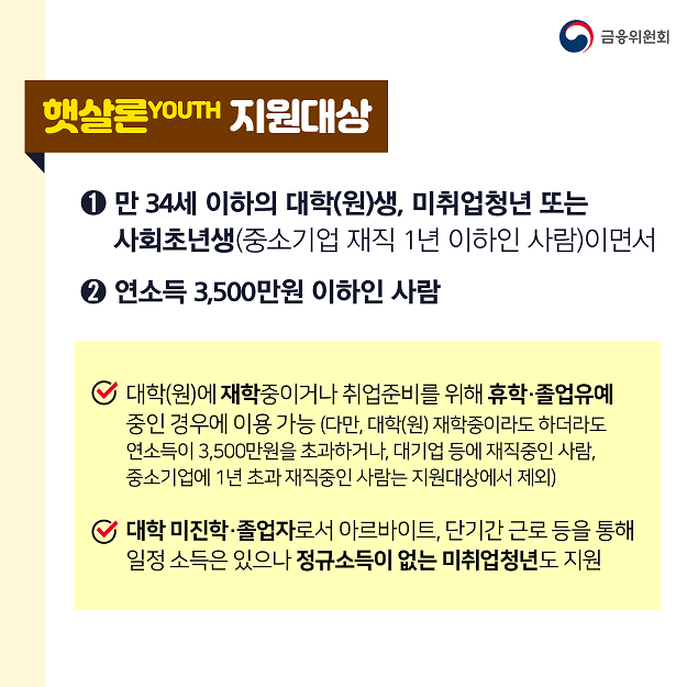 1) 만 34세 이하 대학생, 대학원생, 미취업청년이나 사회초년생(중소기업 재직 1년 이하)