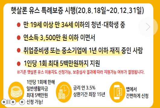 햇살론 유스 특례보증 시행 정보