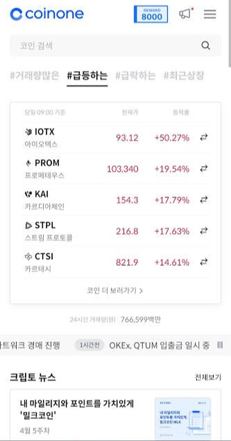 최근 코인원 거래소 가입방법을 정리하기에 좋은 시기인 것 같습니다. 업비트에 있는 대부분의 코인들 펌핑이 끝물이라는 판단에 따라 코인원에 다양한 동전 코인들에 눈을 돌리거나 코인원에만 상장되어있는 카카오의 클레이튼 코인에 눈을 돌리는 것이 주요 이유인듯 합니다.