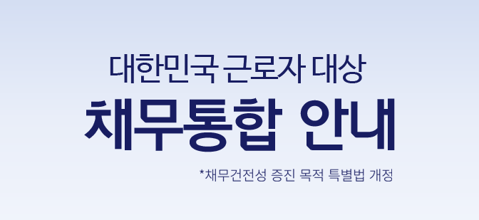 다중 채무 또는 고금리 채무를 저금리 대출 1건으로 통합하는 것으로 계획적으로 낮은 이자를 부담하여 채무자 부담을 줄여줄 수 있는 제도입니다.