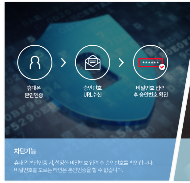 그래서 이것을 방지하기 위해서 휴대폰인증과정에 본인이 설정한 비밀번호를 한차례 더 확인하게 해주는 서비스가 있는데요.