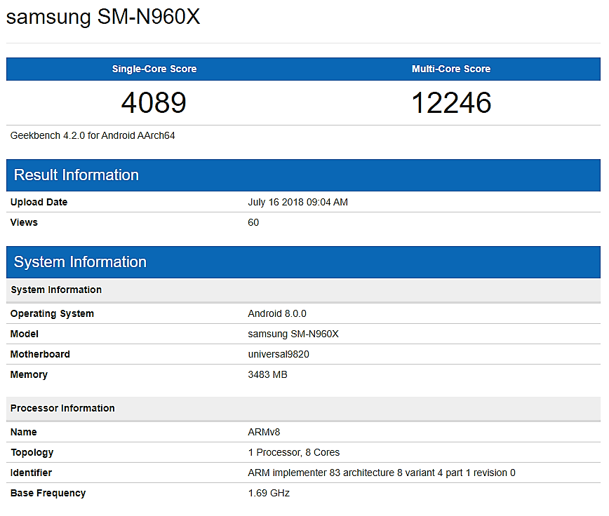엑시노스 9820, 싱글코어 4,089점, 멀티코어 12,246점