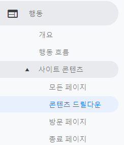 행동 ▶ 사이트 콘텐츠 ▶ 모든 페이지