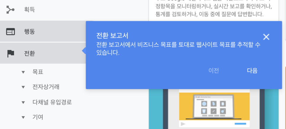 전환 보고서에서 비지니스 목표를 토대로 웹 사이트 목표를 추적할 수 있습니다.