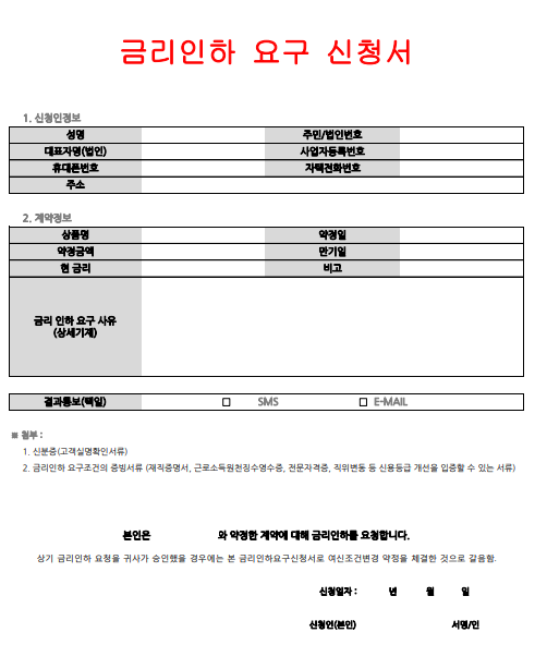 그래도 안되면 금리인하 신청서와 더불어 필요한 서류를 지참하고 은행에 방문하시면 된다고 안내를 받으시면 됩니다.